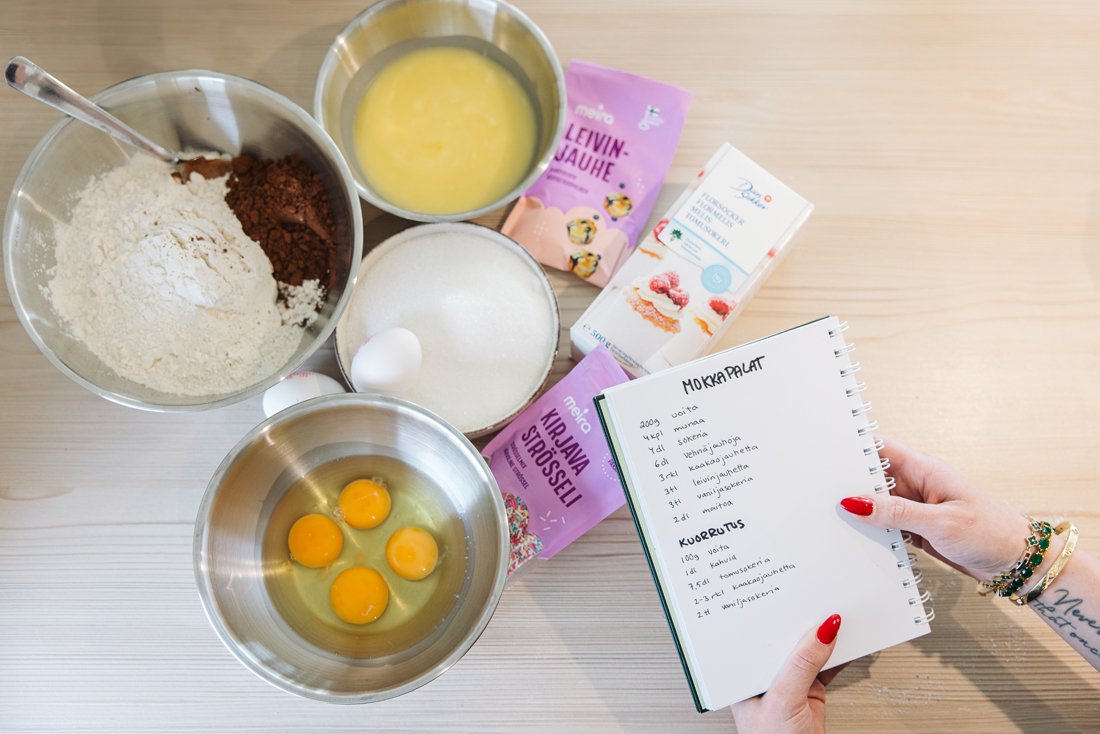 – Mokkapalojen pohjasta tulee mukavan kuohkea, kun käyttää huoneenlämpöisiä kananmunia ja vaahdottaa niitä pitkään sokerin kanssa. Lisäksi kuiva-aineet kannattaa lisätä taikinaan siivilän avulla, jotta mukaan ei tule paakkuja, Rantapusa vinkkaa.