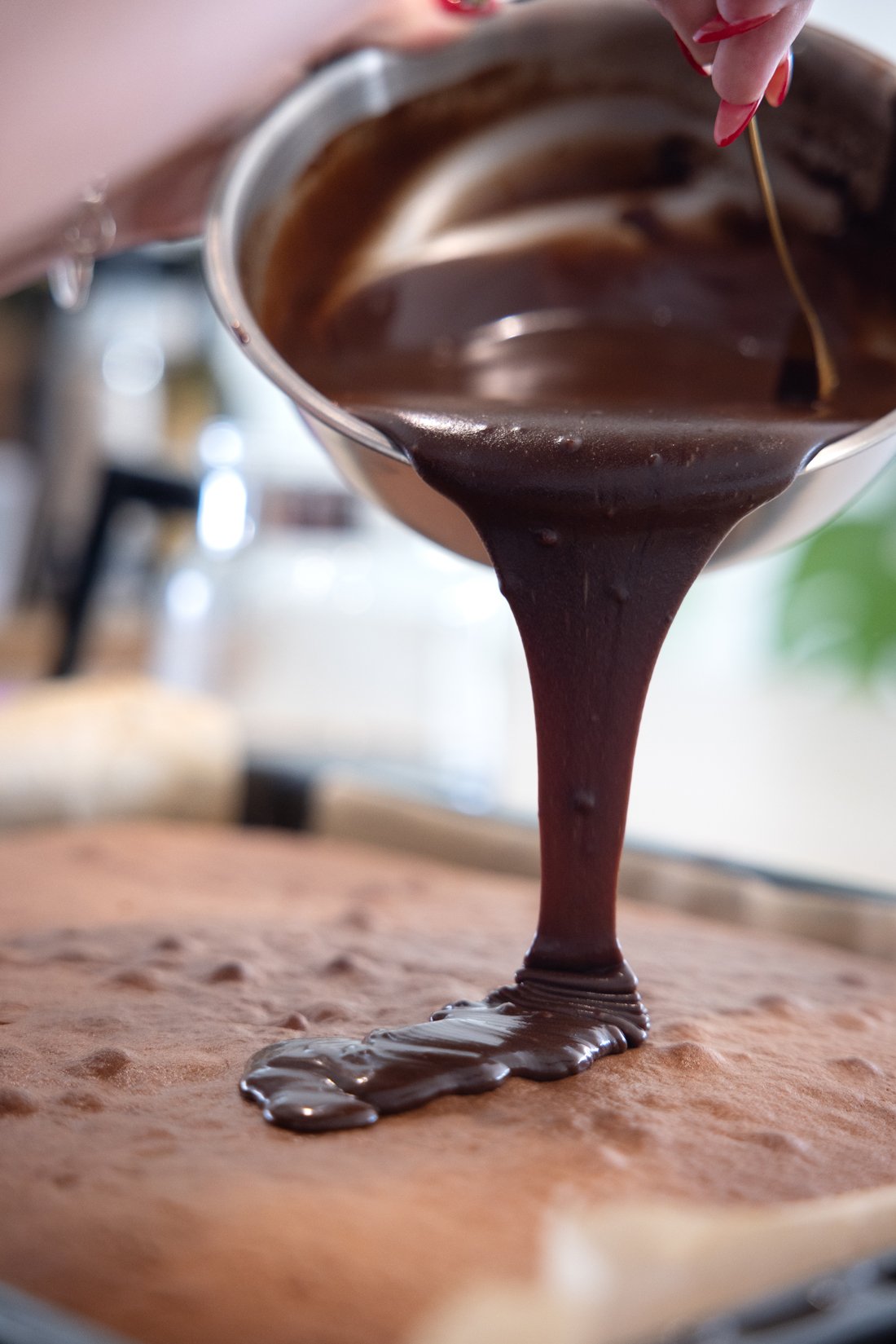 Vaikka lapset olisivat tässä vaiheessa jo malttamattomia, pohjan kannattaa antaa jäähtyä kunnolla ennen kuorrutteen lisäämistä. Muuten vaarana on, että kuorrute imeytyy pohjan sisään.